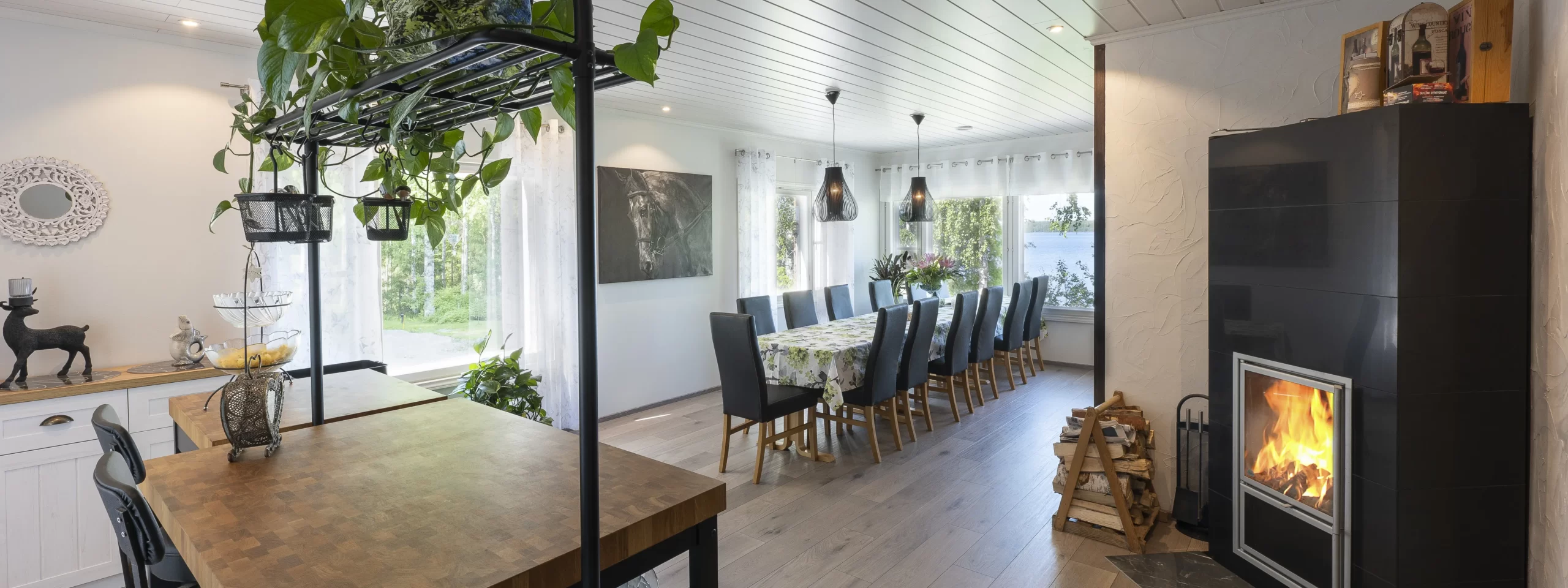 Majoitus sopii hyvin suuremmille ryhmille. Kohteestä pääsee niin metsästämään, tai suoraan järvelle opastetusti omasta rannasta!